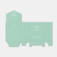 Une simple boîte verte à la menthe pour mariage. Le Merci du message sur le rabat (et sous celui-ci) et les noms (sur le devant, dans la partie inférieure) sont écrits en calligraphie élégante et la date en chiffres plus petits sous le nom. Tout le texte est blanc et peut être modifié.
