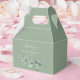 Dégustez vos invités avec une touche joliment coordonnée à l'aide de cette boîte de faveur de mariage vert eucalyptus avec arrière - plan vert sauge. Doté d’un élégant script, de polices serif classiques et d’une illustration d’eucalyptus aquarelle, ce coffret personnalisable comprend un message de remerciement et les noms et la date du couple. Parfait pour les mariages rustiques, de jardin ou minimalistes, il est idéal pour emballer douceurs, pâtisseries ou mini-cadeaux dans un style botanique intemporel.