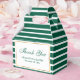 Boîtes modernes vert émeraude pour mariage. Personnalisez facilement ces boîtes de faveur de mariage rayées vert émeraude avec vos détails d'événement.