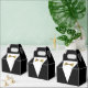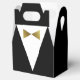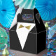 Créez vos propres ballotins tuxedo uniques pour une occasion spéciale en utilisant un modèle do-it-yourself simple qui peut être facilement personnalisé avec un élégant message de remerciement, nom ou autre texte personnalisé. L'art chic de Raphaela Wilson dépeint un tux noir moderne et une cravate d'arc doré. Ces ballotins de remerciement sont des fournitures de fête pour les mariages, une fête de baccalauréat, une fête de 40e / 50e anniversaire, fiançailles, ainsi que d'autres événements officiels. Si vous personnalisez le modèle modifiable plus loin, vous pouvez changer la couleur du costume, de la chemise et de la cravate arc à n'importe quelle teinte de votre choix pour correspondre parfaitement au thème de la fête (c.-à-d. argent, rouge, etc.). Même sélectionnez le script de calligraphie et changez la typographie selon ce qui convient le mieux à votre style. Bon appétit ! Catégorie : Noir fête tuxedo faveurs pour les bonbons; tux ballotins pour les fêtes d'anniversaire; et mariage boîtes pour les invités / marié / meilleur homme. Palette de couleurs à thème doré et noir sophistiqué : faux champagne jaune métallique or, noir fusain et blanc.