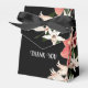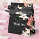 Ce sac de faveur apporte une touche d'élégance avec un flair sombre et sophistiqué. L'arrière - plan noir met en valeur des flores douces en blanc et en bleu, tandis qu'un simple message de "Merci" ajoute un charme discret. Fini avec un ruban noir épuré, il est parfait pour des événements avec une esthétique raffinée et humoristique.