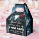 Une boîte cadeau en smoking noir avec une rose rouge fait un design très élégant pour une boîte de faveur de mariage, pour anniversaires, bachelor et bachelorette et autres événements spéciaux.