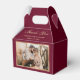 Elégants ballotins de photo mariages de couleur bordeaux et or. Personnalisez facilement ces boîtes de faveur de mariage avec vos détails mariages. Nos boîtes personnalisées pour mariage sont parfaites pour votre mariage classique en Bourgogne et en or. Ces ballotins de remerciement personnalisés peuvent être customisés à d'autres occasions, comme des douches nuptiales.