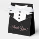 Cette faveur de mariage ou boîte cadeau amusante est conçue pour ressembler à un smoking. Le texte indique le Merci sur le devant avec les noms du couple mariage et la date du mariage sur le dos. Tous les champs sont personnalisables. Une boîte de remerciement parfaite pour les groomsmen, votre meilleur homme, le père de la mariée, le porte-anneau, ou tout autre invité mariage spécial qui pourrait apprécier un ballotin plus masculin.