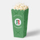 Popcorn favor box has our angel wearing the flag of Mexico for holiday party decorating or Christmas decor. The Mexican Flag Christmas angel is found inside a white, fractal circle of squiggly squares. The background is a green fractal squiggly squares. Add your own text or personalize with a name and the year. Add a little fun favor box to your Christmas party or holiday get together.