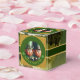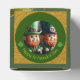 Leprechaun miniature en 3D. Conception sur cube ballotin + "Bonne St Patrick's Day" en cercle vert + carte postale vintage St Patrick's Day en arrière - plan.