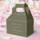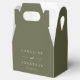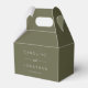 This personalized favor box features a soft olive green design with clean white typography for a modern, understated look. Customize it with names and a wedding date to create a polished presentation for treats, welcome gifts, or small keepsakes. Ideal for weddings, rehearsal dinners, or wedding weekend events where cohesive details matter. A simple way to elevate favors with a timeless, thoughtfully designed finish.