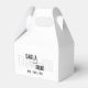 Ces boîtes de dragées de mariage modernes présentent un texte personnalisé noir élégant sur un fond blanc croquant, incarnant l'essence du minimalisme. Le design est élégant et intemporel, parfait pour les couples qui apprécient la simplicité et la sophistication.