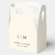 Un Ballotin de mariage simple mais élégant avec un design minimaliste moderne avec votre monogramme de deux lettres avec vos noms et votre date. Tous les éléments de conception sont en noir sur un arrière - plan neutre crème / ivoire et peuvent être changés dans l'outil d'édition de conception. Ces boîtes de Faveur Mariage classique vont bien avec n'importe quel style de mariage.