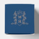 Faites glisser bleu marine et or rose couleur monogramme mariage ou événement favori boîte photo. Idéal pour une mariage à thème bleu foncé et or rose. D'autres articles mariages correspondants sont disponibles. © Cimetière de Monogram avec une couronne de coeur sur le dessus et entrelacé de baies et feuille dessin et design original par Sarah Trett pour www.mylittleedenweddings.com exclusivement sur Zazzle.