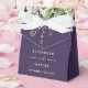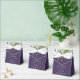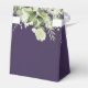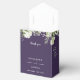 Boîte de faveur de mariage élégante avec verdure florale violette personnalisée avec vos noms, initiales de monogramme, date de mariage et message spécial. Conçue par Thisisnotme©