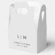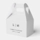 Un Ballotin de mariage simple mais élégant avec un design minimaliste moderne avec votre monogramme de deux lettres avec vos noms et votre date. Tous les éléments de conception sont en noir sur un arrière - plan gris clair et peuvent être changés dans l'outil d'édition de conception. Ces boîtes de Faveur Mariage classique vont bien avec n'importe quel style de mariage.