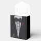Une boîte cadeau en monogramme de smoking noir avec une rose rouge fait un design de boîte cadeau très élégant et intemporel. Le design est pour une boîte de faveur de mariage. Cependant, vous pouvez facilement le modifier pour un cadeau amoureux, une fête de bachelorette et plus encore. L'oeuvre est de Amelia Carrie qui a ajouté des accents supplémentaires comme de subtiles notes de parties scintillant à la chemise et au costume de smoking. Elle a également aligné l'arc sur la boîte à l'endroit où la cravate arc pour le rendre un peu plus spécial. Pour voir des cadeaux plus personnalisés, rendez-vous sur AZEZ.com ou Zazzle.com/AZEZ - De A à Z faites un cadeau qu'ils chériront, EZ.