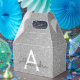 Parties scintillant Argent Faux et Ballotin Cadeau Élégant. Cette boîte cadeau peut être customisée pour inclure votre nom initial et prénom et fait un grand anniversaire, une fête de bachelorette, une douche nuptiale ou une boîte cadeau de baby shower.