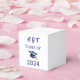 Personnalisez l'année de graduation et le monogramme de trois lettres sur ces boîtes de faveur de la catégorie de 2024. Ajoutez des douceurs ou d'autres gourmandises à la boîte pour une façon amusante d'honorer la journée spéciale de votre diplômé. Texte bleu, arrière - plan blanc, bouchon de graduation bleu avec goût or.