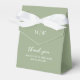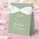 Boîtes de faveur de mariage simples avec un arrière - plan vert sage, vos initiales, le dicton "merci", vos noms, et la date du mariage.