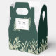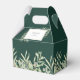Un ballotin de mariage élégant avec des feuilles délicats d'aquarelle sur un arrière - plan vert émeraude encadrant vos initiales monogrammes, date spéciale, et message de remerciement mis en typographie moderne. Une façon parfaite de remercier vos invités ! Conçu par Thisisnotme©