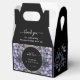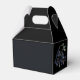 A bold and sophisticated Favor Boxes featuring dramatic dusty blue and grey floral illustrations against a stark black background. The crisp white typography and classic layout set an elegant, moody tone. Perfect for a formal evening or a sophisticated wedding.