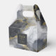 Vos rêves se réalisent enfin et ce design abstrait fluide, à l'encre d'alcool, donne le ton parfait pour le fabuleux mariage que vous avez toujours imaginé. Dans des tons allant du charbon de bois au noir, accentué d'or scintillant, le ballotin de style gable présenté ici fournit un modèle pour ajouter facilement vos initiales, date mariage et message de remerciement. Recherchez ID988 pour voir d'autres pièces dans ce jeu de mariages coordonné.