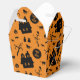 Un ballotin de des bonbons ou un sort de Halloween pour ces sucreries et chocolats ! Il a beaucoup d'éléments de Halloween qui incluent des silhouettes des chats, chauves-souris, arbres, pierres tombales, hiboux, arbres défraîchis, Jack-o'-lantern ont découpé des citrouilles et mystérieux regardant les maisons probablement hantées. Le texte lit le des bonbons ou un sort. Une palette de couleur de noir et orange avec le peu du blanc.
