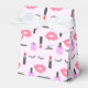 Un design de maquillage mignon, avec rouge à lèvres, lèvres, crayon mauve, faux cils et vernis à ongles rose.