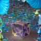 Ballotins Motif de Parties scintillant en or violet marbre n