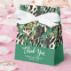 Entrez dans un monde d'élégance et de faune avec ces boîtes de remerciement vertes à thème safari bohème.