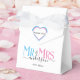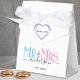 Célébrez votre mariage sacré avec cette mignonne fête de mariage Monsieur et Madame, merci boîte pour les invités mariages. Customisez-le en ajoutant votre nom de famille / nom de famille et date d'anniversaire du mariage. Police élégante rose, bleu et noir avec forme de coeur. Idéal pour une douche nuptiale ou anniversaire / mariage réception dîner pour un mari et une femme.