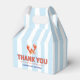 Kids birthday favor boxes featuring an enchanting lobster and a chic striped blue and white background, and a text template that is easy to personalize. Add a creative twist to your celebration with these charming boxes. Each box is designed for simple customization, ensuring your party details look perfect.