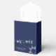 Boîtes de mariage bleu marine et blanc (ballotin de tente avec ruban blanc) avec roue blanche et texte changeable - vous pouvez ajouter le nom de la mariée et du marié et la date du mariage.