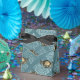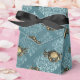 Ballotin muni d'un motif de crabe doré contre un arrière - plan damassé en difficulté, aux accents turquoise doux et bleu aqua.