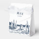 Pour les couples qui se marient au bord de l'océan ou sur le lac, cette boîte de préférence Nautical Sailboat est un choix élégant. Cette conception de voilier a été créée par l'artiste Katharine Woodman-Maynard, basée au New Hampshire, dans son style de coupe à bois. Pour voir la collection complète de la collection de Mariages nautiques, visitez MaywoodArt sur Zazzle.