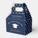 Ce chic ballotin de soirée senior marine bleu et or coutume met en vedette la typographie chic blanche et or sous un nom de lycée ou de collège pour la classe de 2024. Customisez avec votre année de graduation sous la belle calligraphie de félicitations pour une grande décoration de cérémonie de diplômes personnalisée. Des pois classiques décorent les côtés.