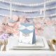 Cute adorable modern winter baby shower theme, Holiday baby shower theme, design feature dusty blue watercolor winter floral storybook decor with Christmas winter snowflake snowball, blue winter flower, leaves and script calligraphy typography "The new chapter begins". you can customize your own unique text and color.