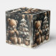 Profitez de cet adorable ballotin pour vos cadeaux de vacances ou pour des fêtes. Ce design "mignon Ours en peluche Noël" se trouve à proximité d'un petit arbre de Noël couvert de neige décoré avec une étoile d'or et des billes. Il porte un foulard plaid, et à la distance noire foncée vous pouvez voir des flocons de neige tomber.