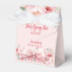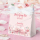 Un fond rose poudré orné d'un grand nœud rose et de roses. Texte : Elle noue le NŒUD. Personnalisez avec le nom de la future mariée.