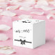 Boîtes noires et blanches classiques avec arc noir et texte personnalisable - vous pouvez ajouter le nom de la mariée et du marié et la date du mariage.