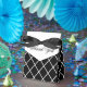 Un élégant motif en Jacquard noir et blanc décore ce ballotin Merci. Ce ballotin est idéal pour une douche nuptiale, mariage, réception, anniversaire, fête, etc.... Le design est issu de l'art original.