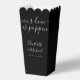 Un élégant ballotin de pop-corn de mariage avec des noms de script de signature et une date spéciale dans la typographie moderne sur un arrière - plan noir. Conçu par Thisisnotme©