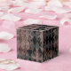 Boîte à faveur élégante avec motifs damassés or rose et harlequin noir.