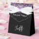 Un anniversaire ou un événement marquant élégant et glamour. Un fond noir avec des paillettes fausses violettes, des scintillements. Avec le texte : Merci ! Personnalisez et ajoutez votre nom. Lettres blanches. Le nom est écrit avec un style de lettrage à main tendance.