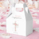 Ballotin de confirmation moderne avec une croix florale sur un arrière - plan blanc et un nom de script manuscrit. Personnalisez avec nom, texte et date.