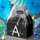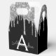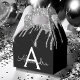 Boîte cadeau en papier à monogramme et initiale pailletée argent et noir. C'est le cadeau idéal pour un anniversaire de 16 ans, un mariage, une douche de mariée, un anniversaire de mariage, une baby shower ou une fête de bachelorette pour quelqu'un qui aime le luxe glamour et les styles chics.