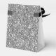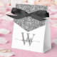 Boîte personnalisée élégante moderne féminine blanche et argentée avec monogramme et nom personnalisé en écriture script. Ce design présente votre prénom dans un joli style d'écriture manuscrite avec fioritures, signature et typographie (ou calligraphie) avec monogramme initial, sur un bloc de paillettes de couleur gris argenté faux sur fond blanc. Ces boîtes à cadeaux féminines et élégantes sont idéales pour offrir des cadeaux, des cadeaux pour les invités et des friandises lors d'une fête d'anniversaire à venir, d'un BBQ, d'un anniversaire sweet 16, d'une baby shower, d'une réception de mariage, d'une soirée d'enterrement de vie de jeune fille, d'une douche de mariée, d'un anniversaire de mariage et plus encore.