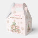 Ballotin baby shower de Noël fille. Comprend de mignons ours de bébé, un arbre de Noël et des cadeaux avec des flocons de neige dorés en fausse parties scintillant et des étoiles, le tout en rose, beige et vert. Personnalisez facilement tout le texte. - Kate Eden Art