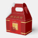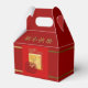 Découpage en papier de bœuf rouge sur peinture asiatique avec vœu en anglais à l'avant (lettrage doré et ombre portée non personnalisables) + vœu chinois. Design sur boîte cadeau à pignon. Vous pouvez facilement changer la couleur de fond en cliquant sur le bouton personnaliser. Disponible dans d'autres styles de boîtes cadeaux (cube, tente, à emporter). Sac cadeau assorti, carte de vœux, carte postale et autres produits artisanaux. Parfait pour le Nouvel An chinois de l'année du Bœuf 2021.