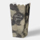 Mariage teinté de noir et d'or, boîtes de faveurs pour les invités. Remplissez-les de pop-corn ou d'une friandise !