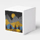 Paysage montagnard Abstrait dans des tons audacieux d'or, noir et bleu avec un lever de lune et des oiseaux.