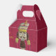 Profitez de ce magnifique design Nutcracker avec un grand soldat sur le devant, élégant, écriture dorée "Joyeux Noël" sur le côté gauche. Prince, soldat et fée de prune de sucre sur le dos. Arrière - plan est un look velours rose profond.