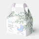 Adorable ballotin baby shower de dire merci aux invités d'avoir assisté à votre baby shower! Parfait pour ceux qui attendent un bébé. Des feuilles d'eucalyptus vert clair entourent le dessus tout autour, l'avant tient votre texte personnalisé et une poussette bleue pour bébé pieds minuscules qui sort du haut. Un côté tient un bébé mobile coloré et le dos tient un ours en peluche mignon.